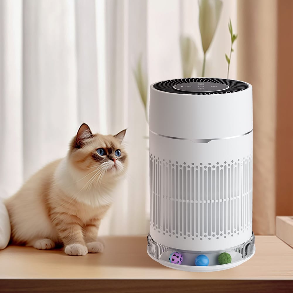![]() INTERACTIVE CAT TOY Colorful balls and catnip balls are equipped for your lovely pets. | ![]() Cat Hair Brushing Board Cats can scratch their paws and fur with the cat hair brushing board, and also play with it. | ![]() WIFI Remote Control Connect to the TUYA APP and turn on the air purifier before you come back home. It’s more convenient for you to reserve good air in advance. |