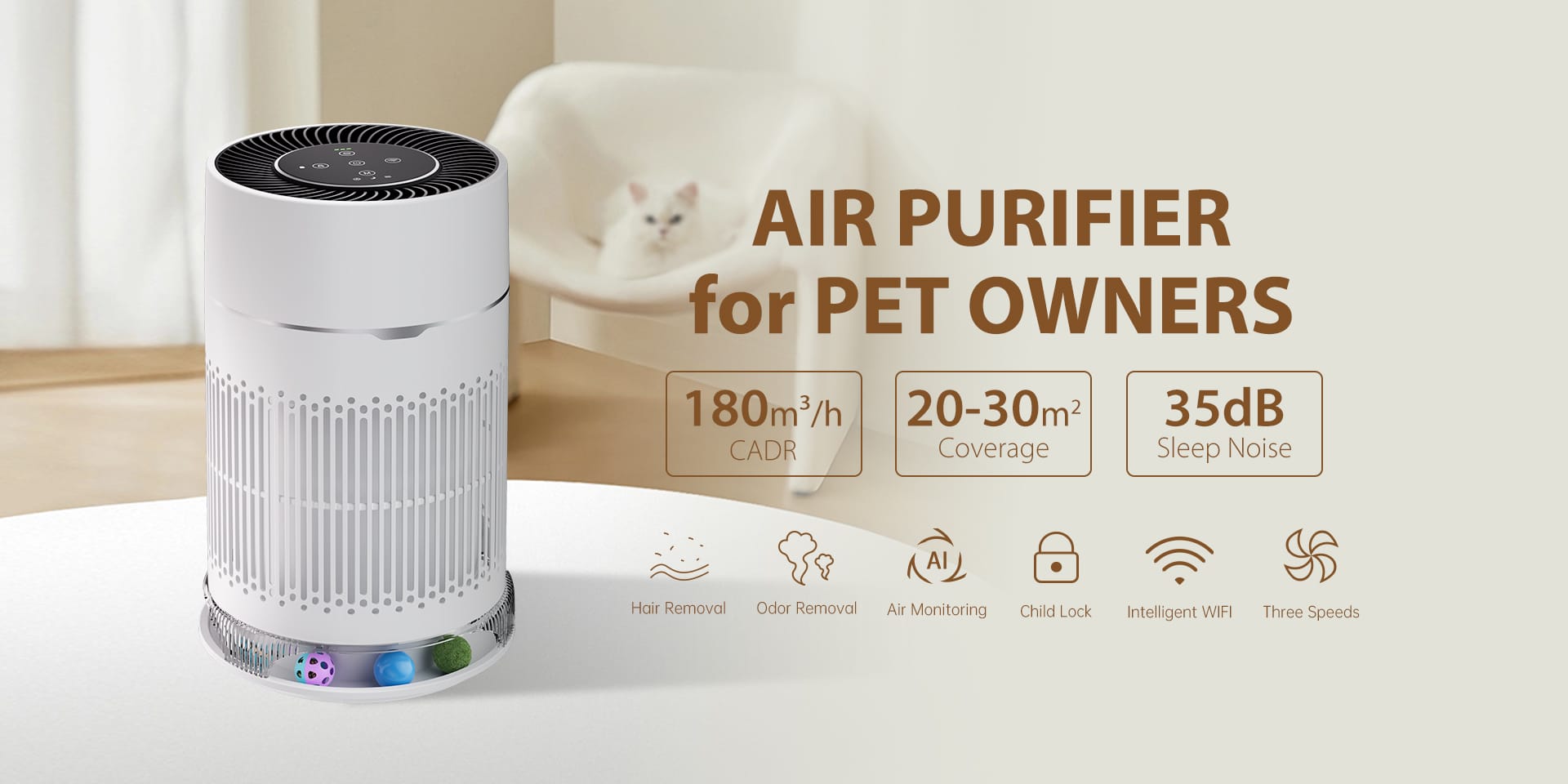 - Quiet Sleep ModeLow-noise but high efficient purification in sleep mode. And the ambient blue light keep you in warm mood with your pets.
