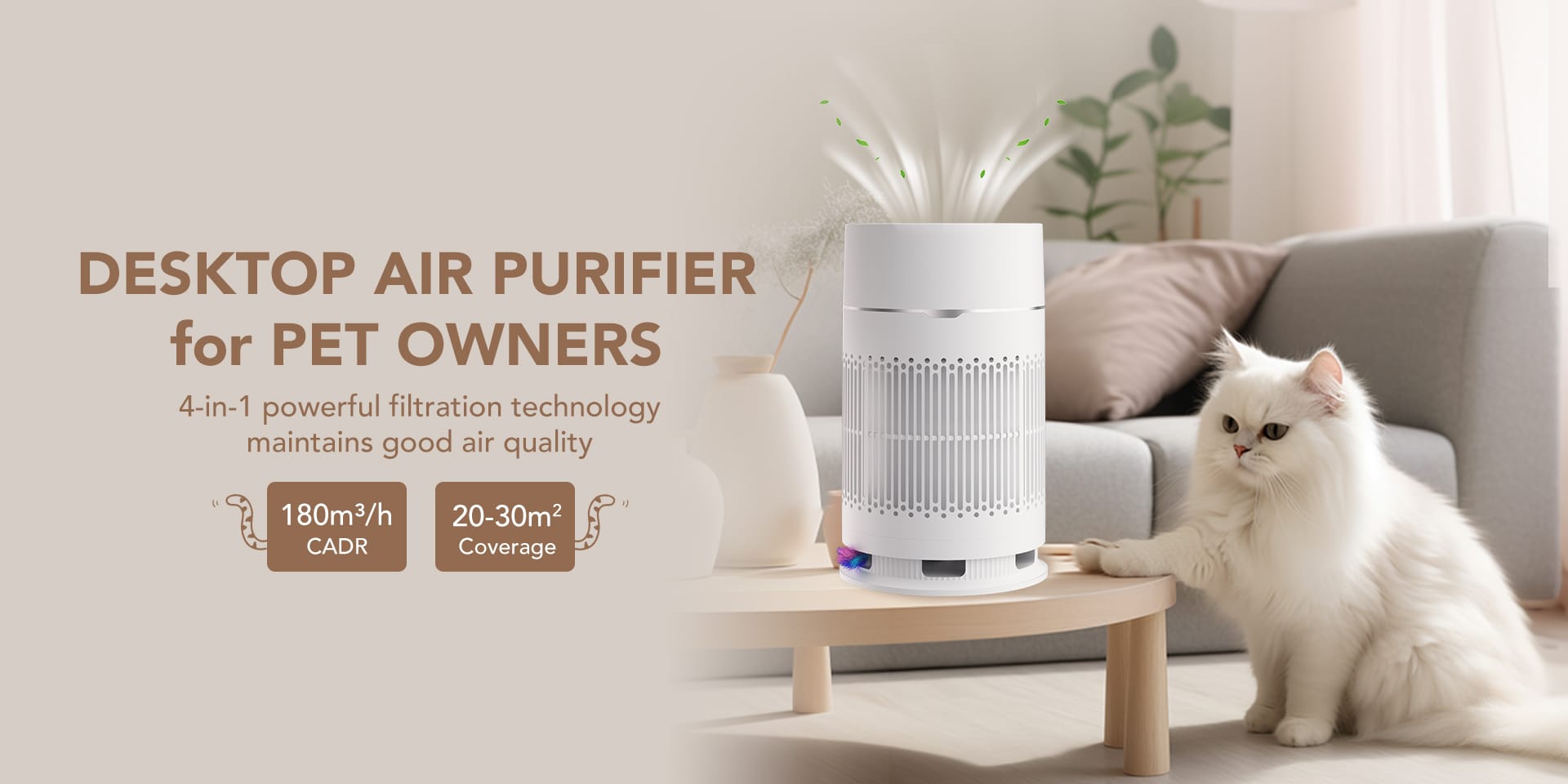 ANTOP AP-D1-SP201-T Desktop Air Purifier for Pet Owner