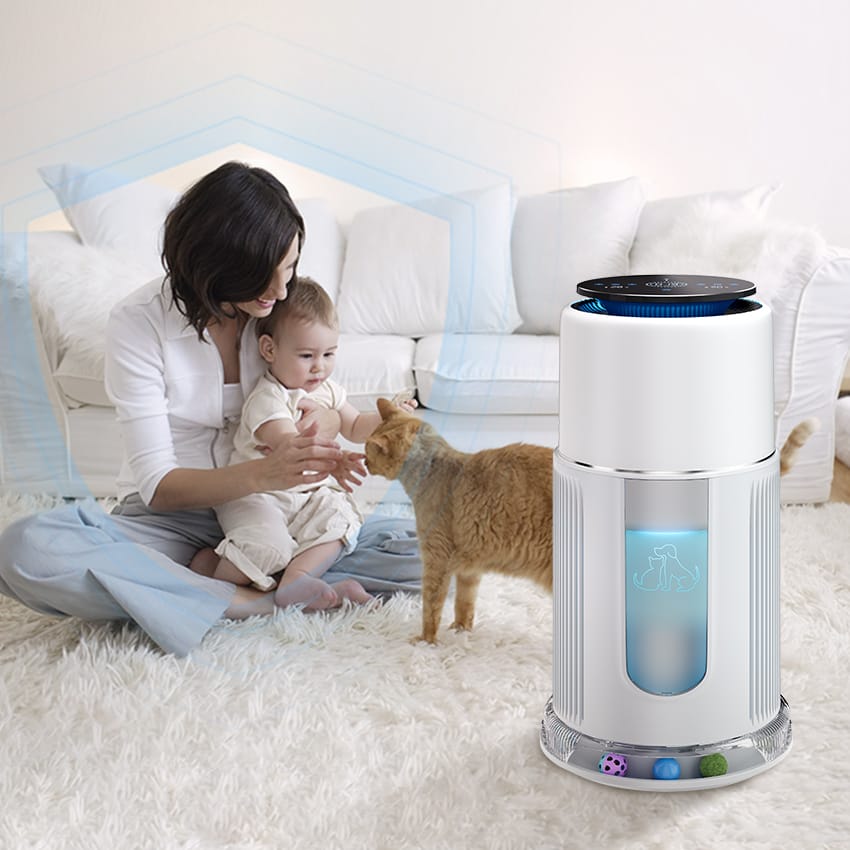 The AP-L2-GP201-B pet air purifier adopts an advanced combination of H13 HEPA filter and activated carbon filter, which can effectively purify the air, remove air odors, and improve comfort and health levels.