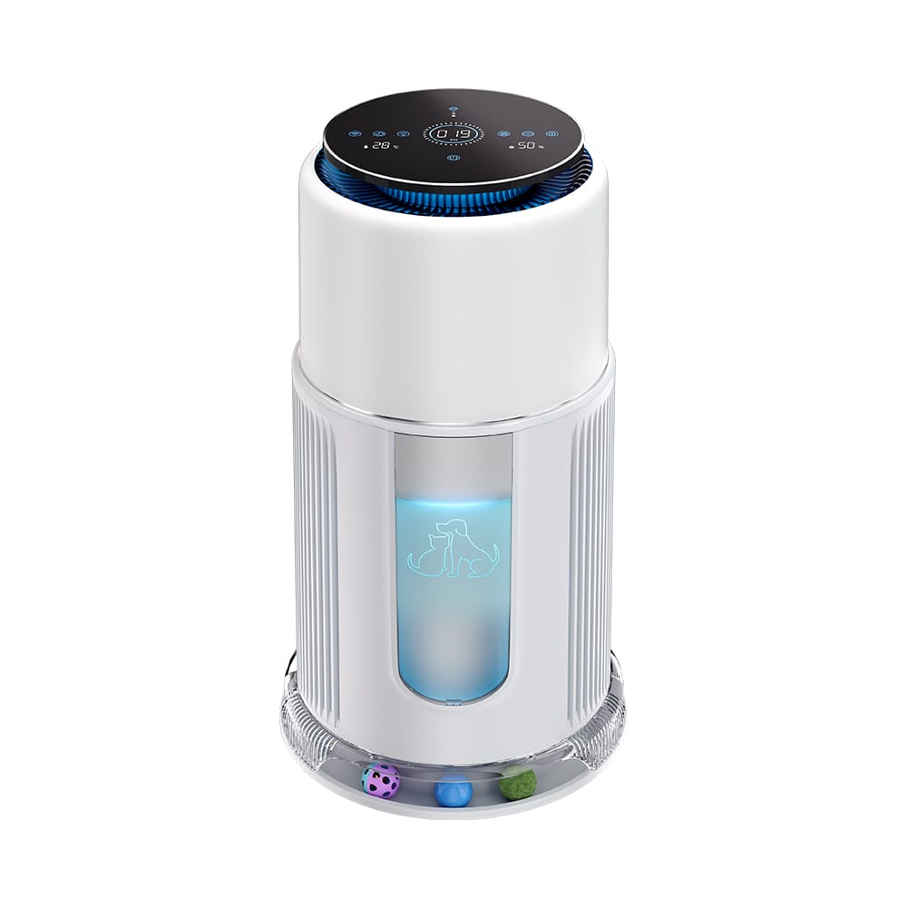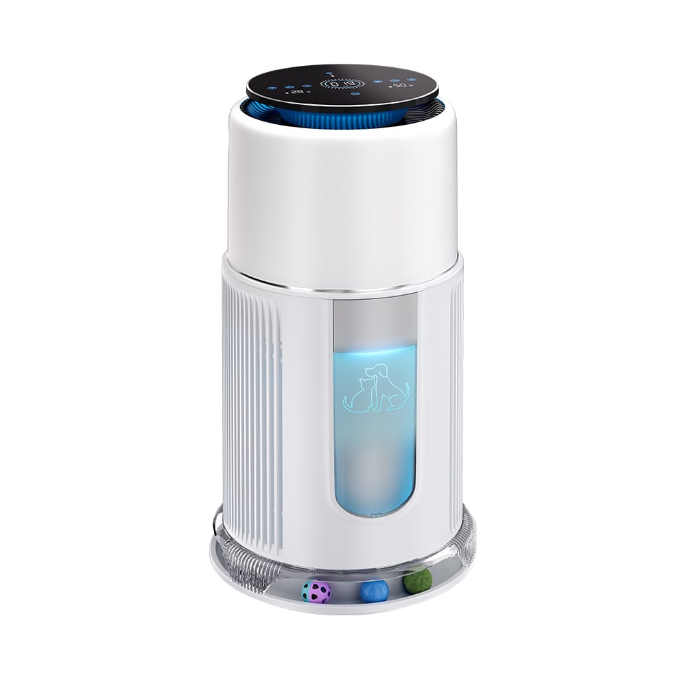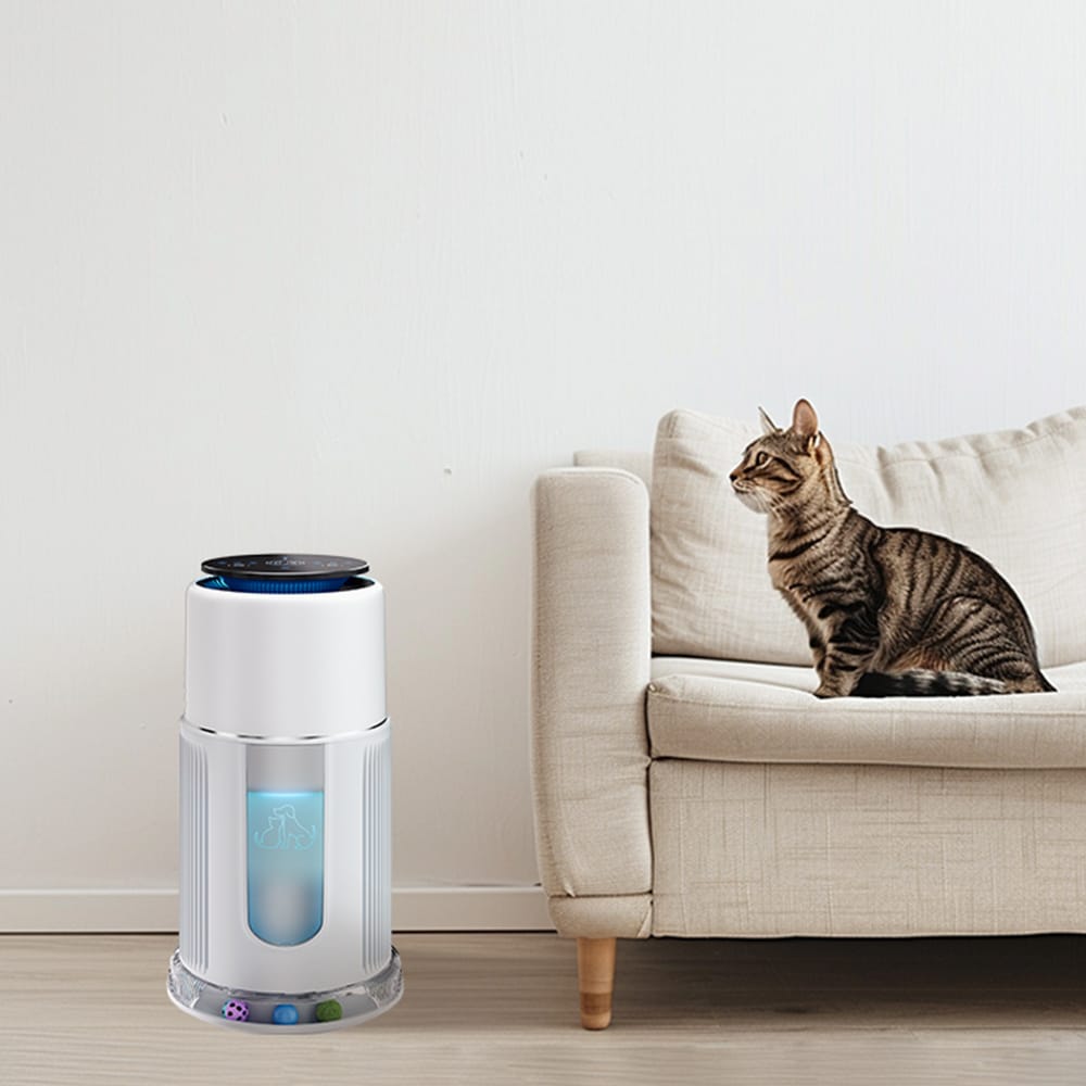 ![]() Temperature & Humidity Stay informed about the room temperature and humidity with the clear display on the purifier. | ![]() Interactive Cat Toy Retractable cat toy engages pets with playfull interaction, | ![]() Cat Scratcher(Optional) Let your cat scratch, rub. Destress all in on spot. |