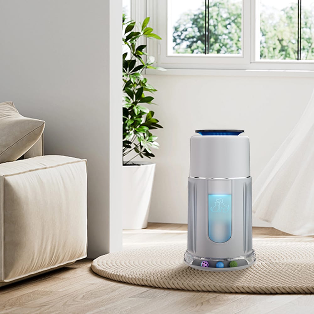 - Quiet Sleep ModeLow-noise but high efficient purification in sleep mode. And the ambient blue light keep you in warm mood with your pets.
