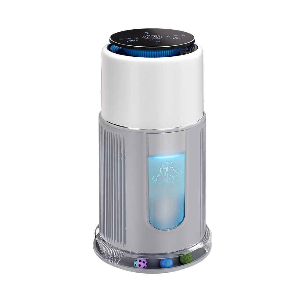 The AP-L2-GP201-B pet air purifier adopts an advanced combination of H13 HEPA filter and activated carbon filter, which can effectively purify the air, remove air odors, and improve comfort and health levels.