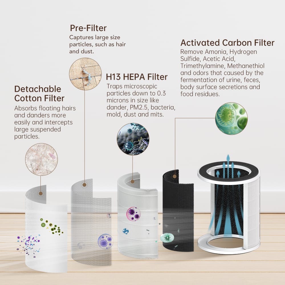 - 4-in-1 HEPA FilterElectrostatic Cotton Filter, Pre-Filter,H13 HEPA Filter and Activated Carbon Filter
