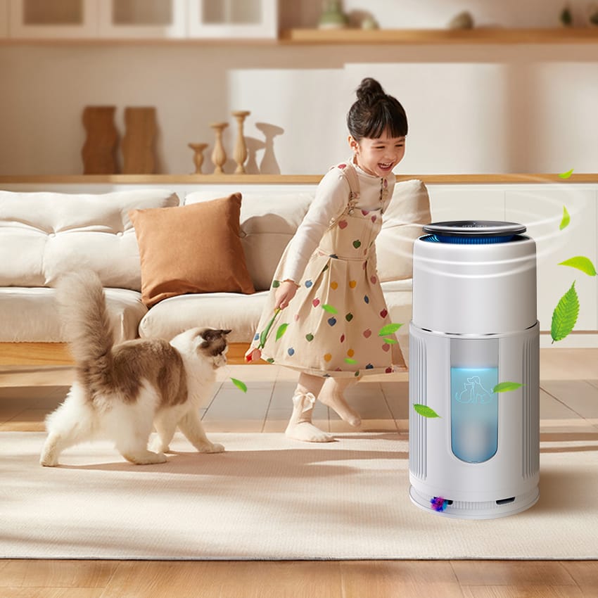 The AP-L2-GP201-T pet air purifier adopts an advanced combination of H13 HEPA filter and activated carbon filter, which can effectively purify the air, remove air odors, and improve comfort and health levels.